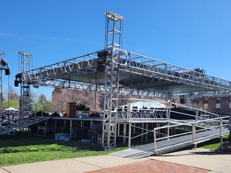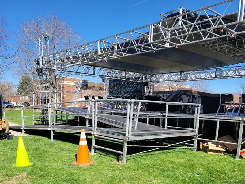 From single-stage concerts to large-scale, multi-tiered productions, Concert Concepts delivers complete staging systems in Colorado and beyond designed to impress, engineered to perform, and built to last. Every structure is crafted with precision, prioritizing safety, reliability, and visual impact—so you can focus on delivering an unforgettable live experience with total confidence.