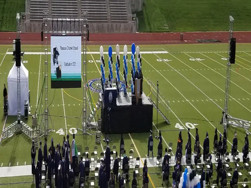 We offer a comprehensive inventory of professional-grade audio systems, staging, truss, rigging, lighting, LED walls, projection, and reliable power distribution. Whether your ceremony is hosted in a gymnasium, auditorium, stadium, or outdoor venue, we provide scalable solutions tailored to your location and audience size.